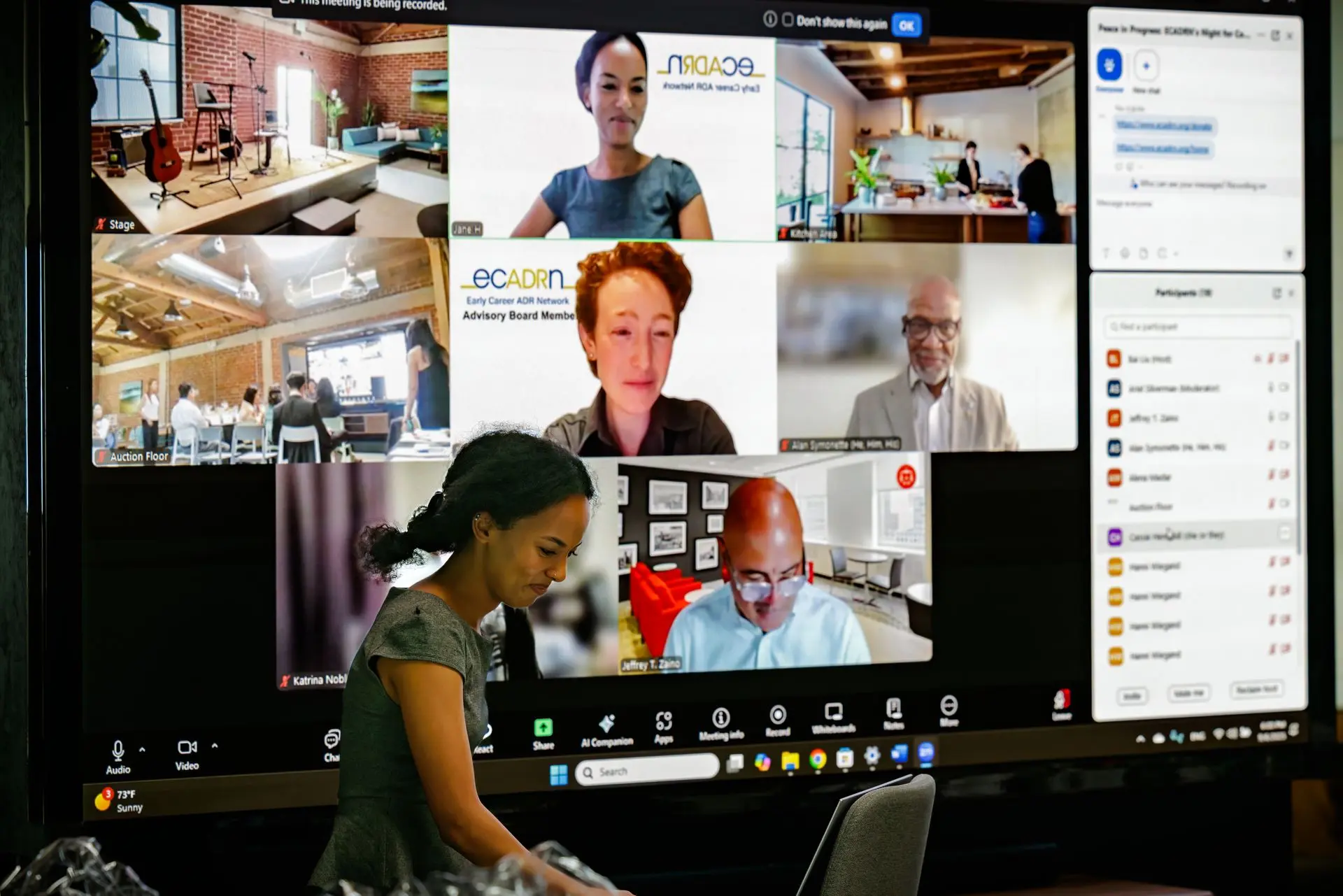ADR leaders Alan Symonette; Jeffrey T. Zaino, Regional VP of AAA’s Commercial Division; Katrina Nobles, Director of Conflict Programs for the Scheinman Institute on Conflict Resolution at the Cornell University ILR School; and Cassie Hemphill (Ph.D., CM, CVF, CP3), Owner of Confluence Training and President of the Montana Mediation Association, shared how they entered the field and offered advice for newcomers. This session was moderated by Ariel Silverman, a student at George Washington University Law School and Advisory Board Member of ECADRN.